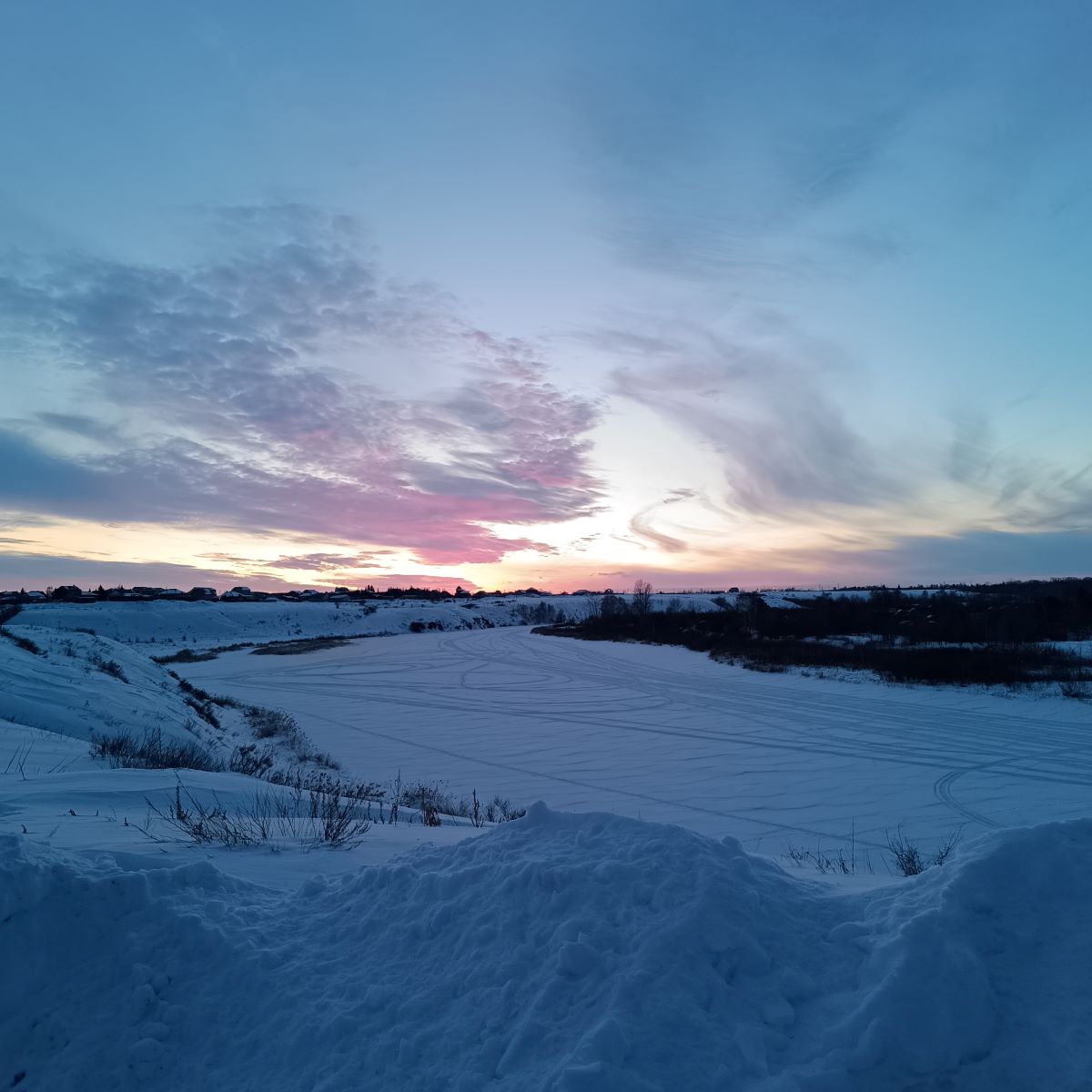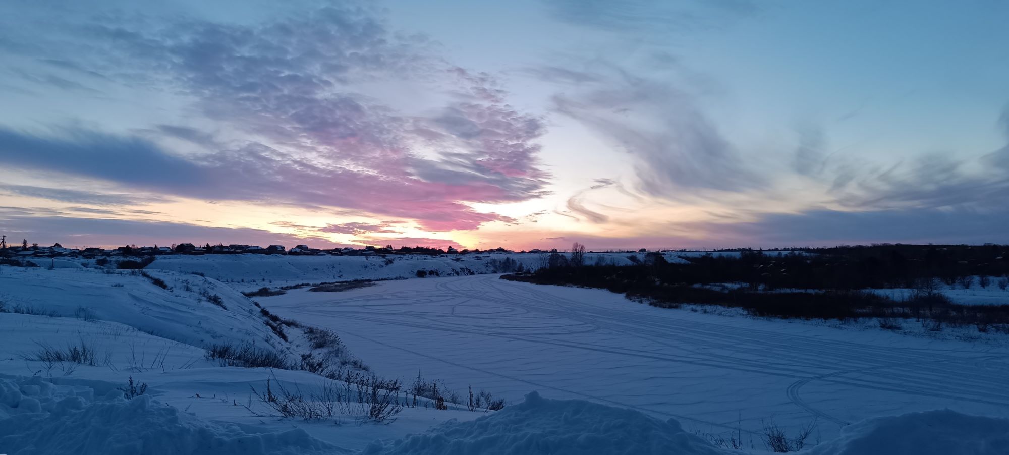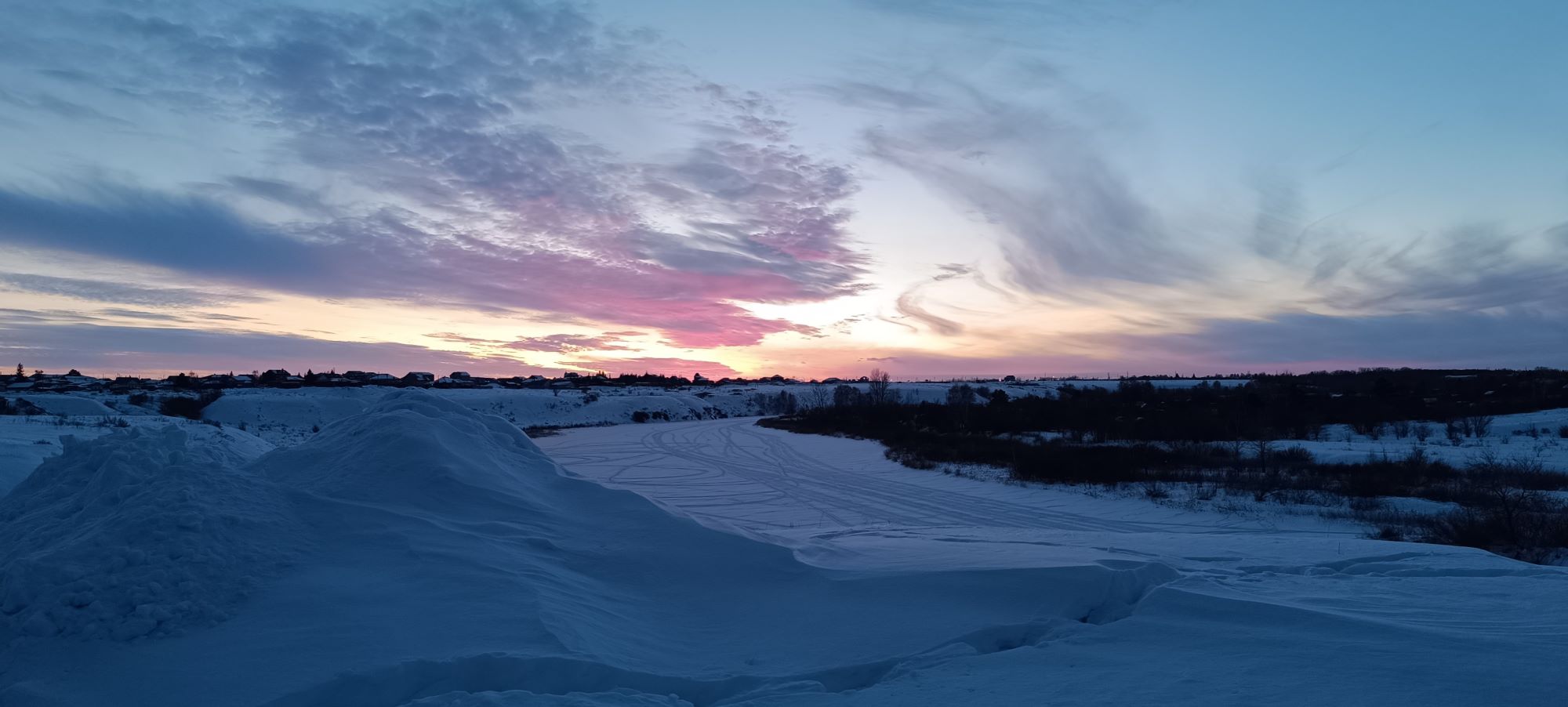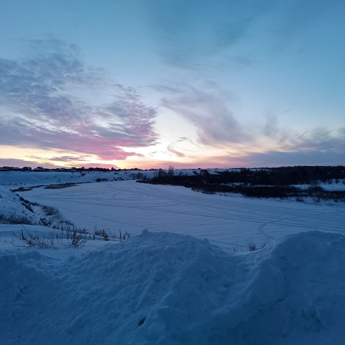 ДОПОЛНИТЕЛЬНАЯ ИНФОРМАЦИЯ: Оригинальные фотографии по теме – Зимний пейзаж. Закат на реке в последних числах февраля - завтра март. Широкоформатные (примерно, как панорамные) фотографии. Фотографии кликабельны, можно увеличивать. Творческая публикация на платформе Serey. Камера Redmi Note 12 Pro+.
