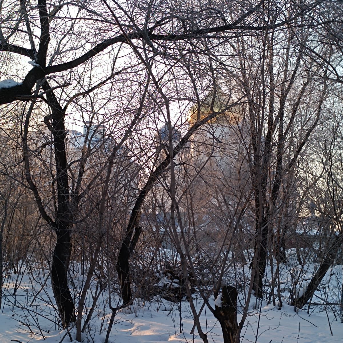 Как мы хорошо видим по фотографиям. Зима не уходит, а Весна всё не приходит. До сих пор вокруг на улицах много снега. Но как нам уже хочется солнечных дней. Вот и солнце на восходе пока холодное.