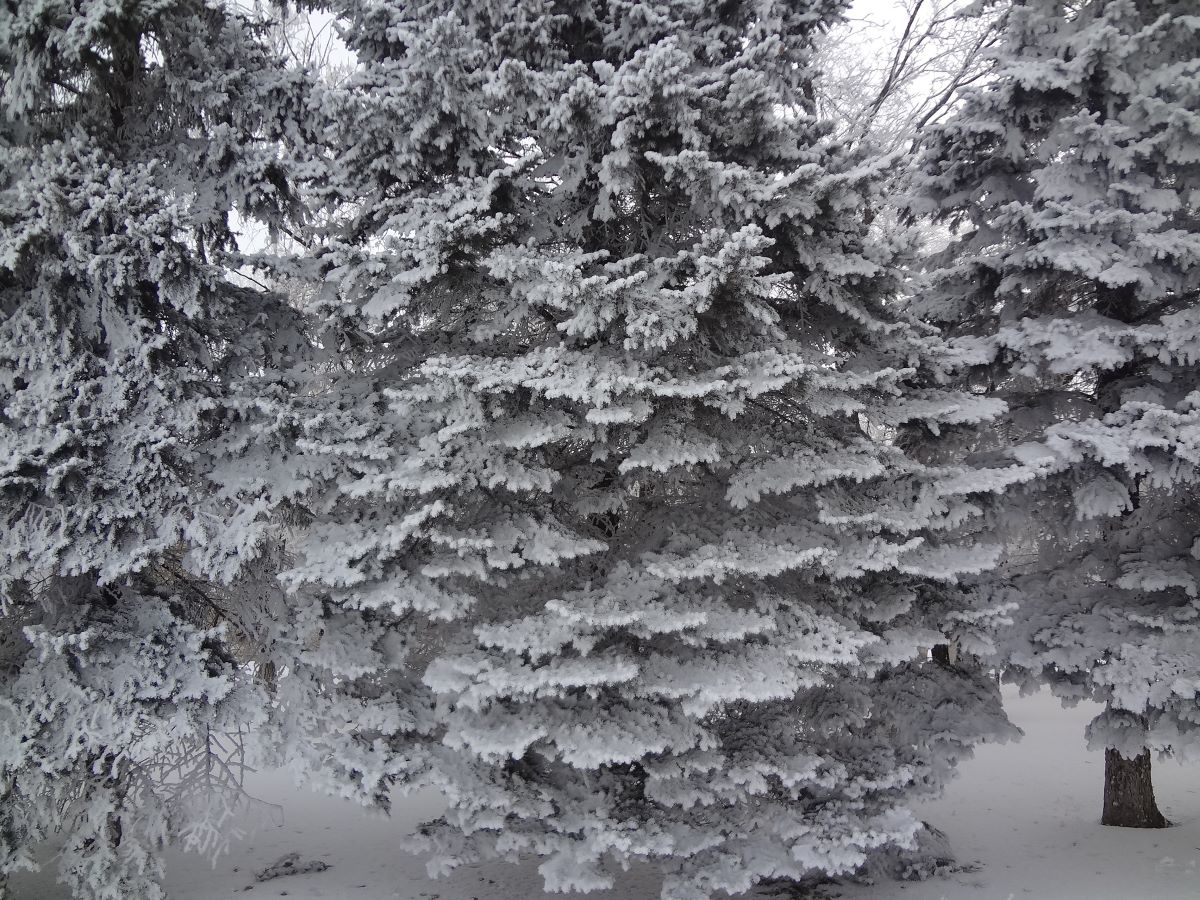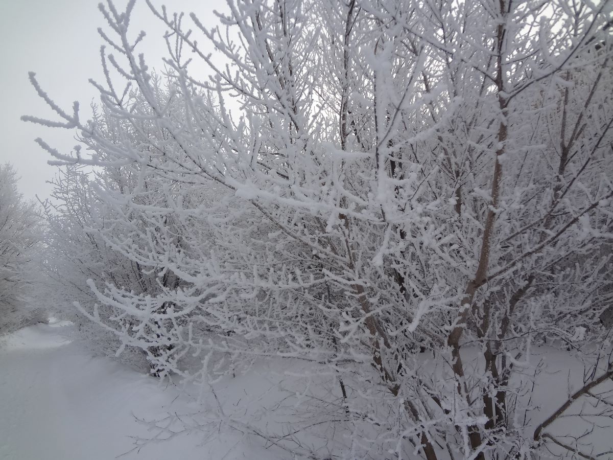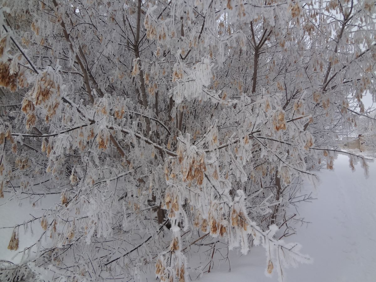 Будем вспоминать зиму с её снегами, да морозами. Хотя, как мы видим на этих фотографиях - красота. После оттепели днём - утренний мороз и иней везде. Иней на деревьях, кустарнике, елках и даже шишках. Но вся эта красота сохраняется недолго - до восхода. Солнце и ветерок моментально сбрасывают красоту. Поэтому нужно зафиксировать мгновение на фото. Что собственно и сделал я в это утро ещё до полудня. Далее, конечно, уличный пейзаж изменился быстро.
