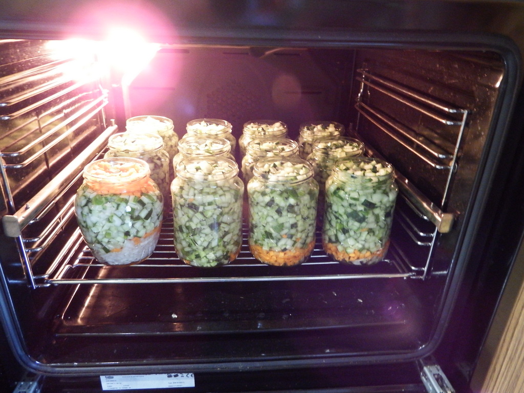 Банки ставим в прогретую духовку до 180 градусов и стерилизуем 15 минут.