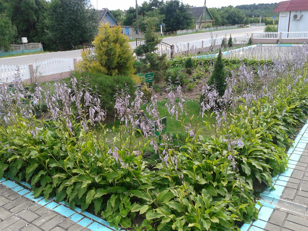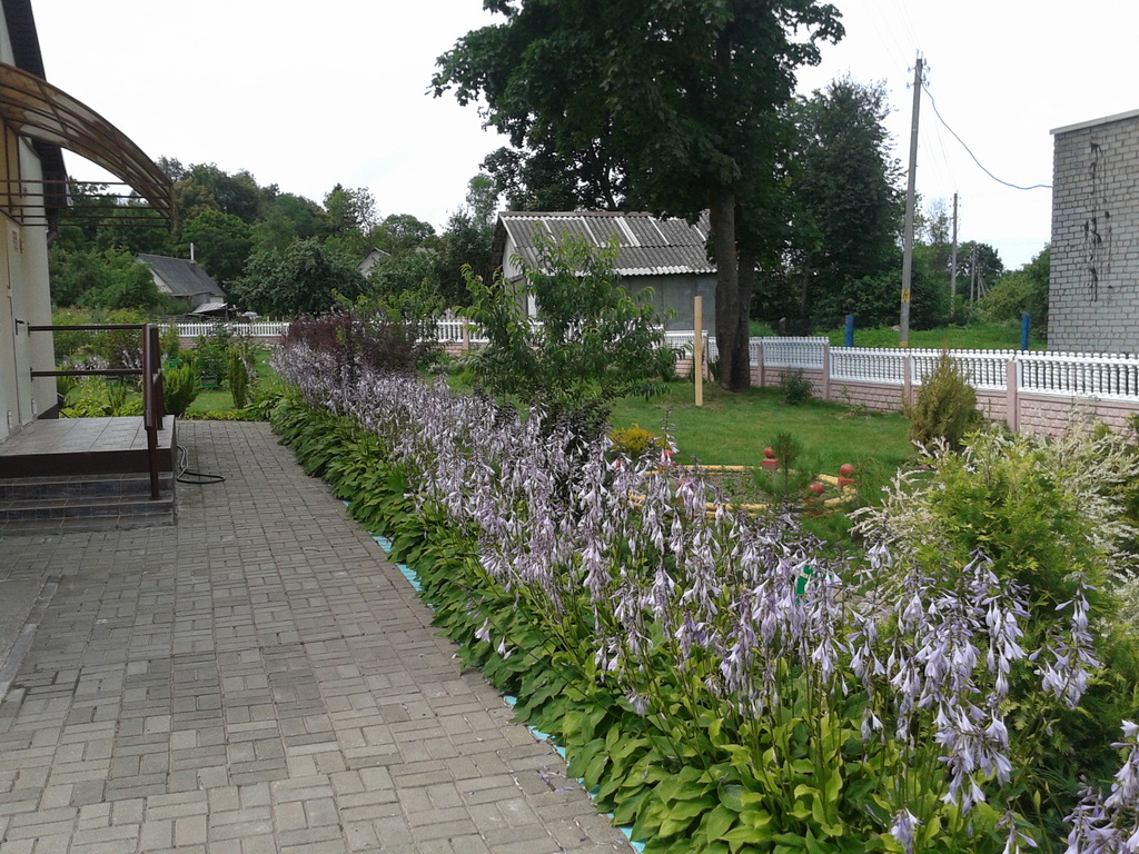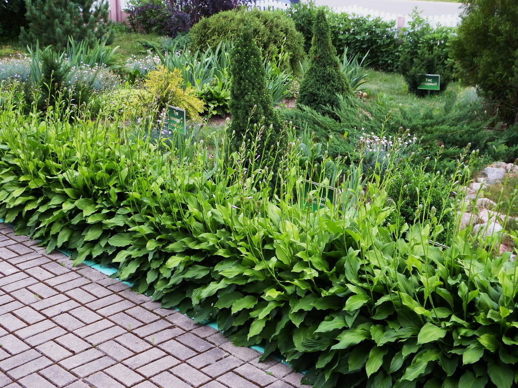 Со временем разрослись и посадки хост, и превратились в сплошной зеленый бордюр, который в общей сумме имеет более ста метров длины на вспей территории.
