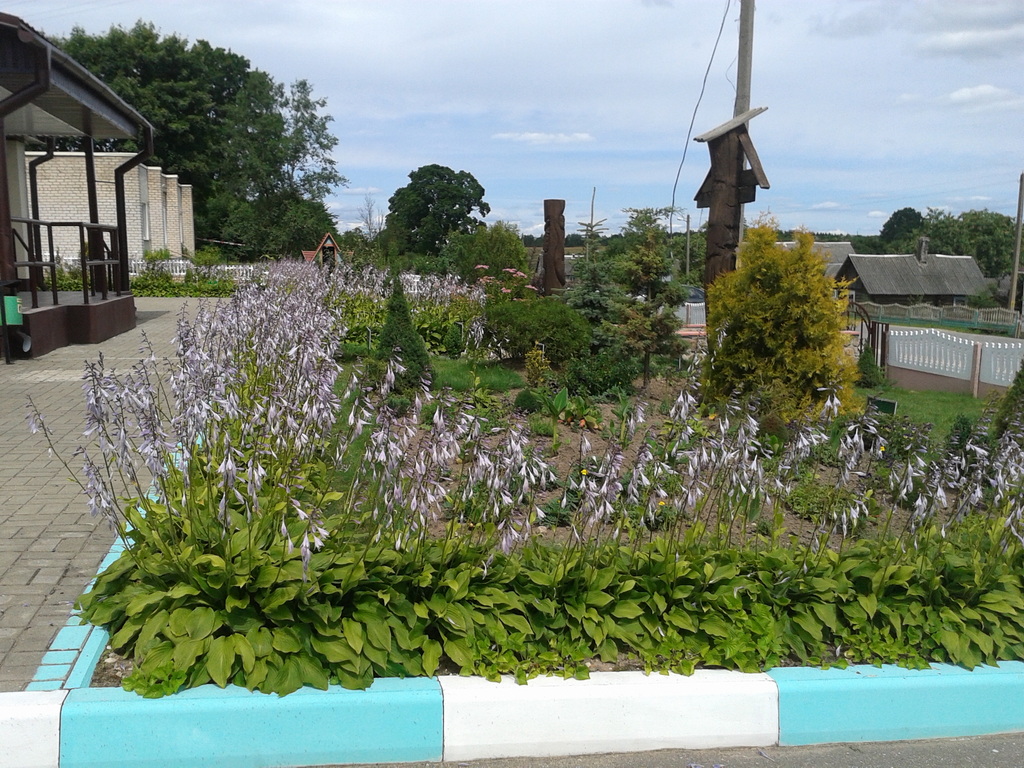 И забылось, когда вся территория вокруг конторы была задекорирована живым бордюром из хост и посажены новые деревья. Ассортимент так себе, но смотрелась красиво.