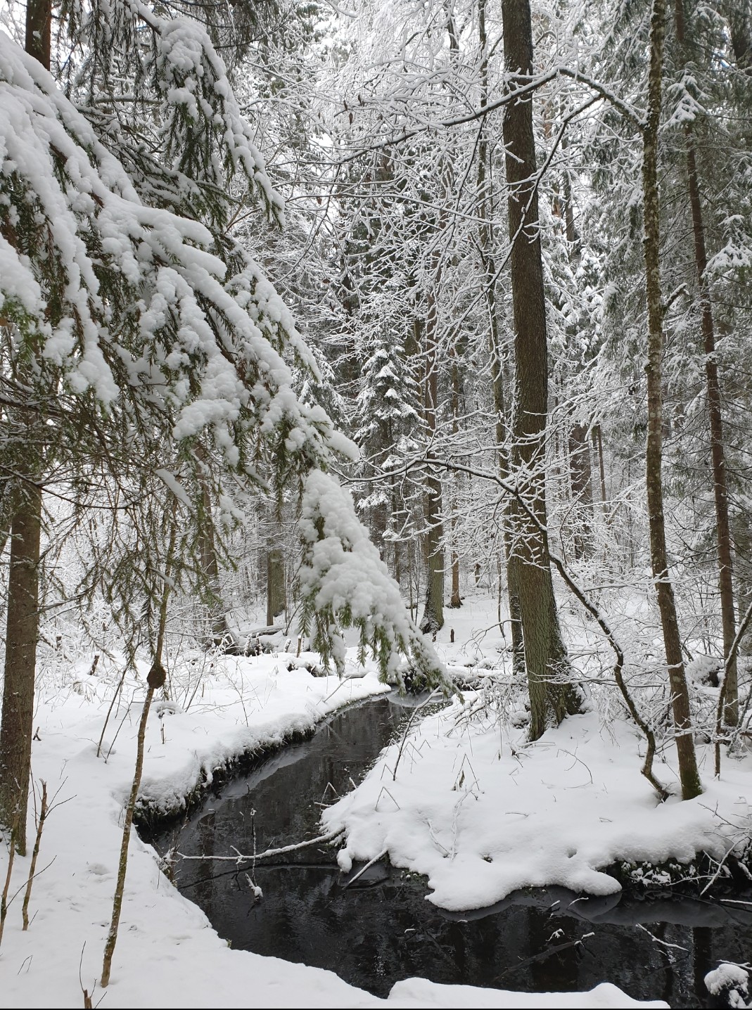 Под ногами приятно хрустит снег, а если приглядеться то можно разглядеть следы лесных животных.