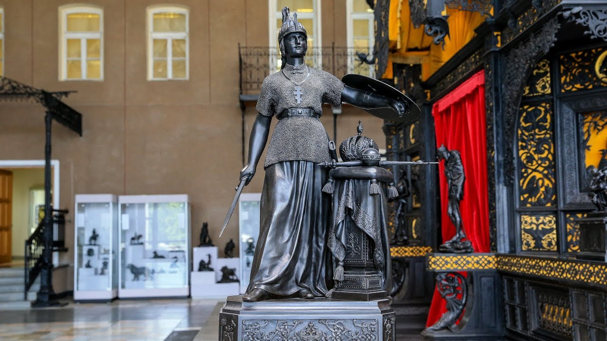 At the exhibition, the pavilion was presented together with the cast-iron sculpture “Russia” by Nikolai Akimovich Laveretsky, a female warrior, defender of the Russian Land.